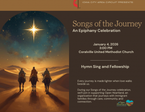 The Iowa City Area United Methodist Circuit presents an afternoon of hymn singing & fellowship hosted by Coralville United Methodist Church in support of Open Heartland, a non-profit agency in Iowa City providing help for local immigrant communities.